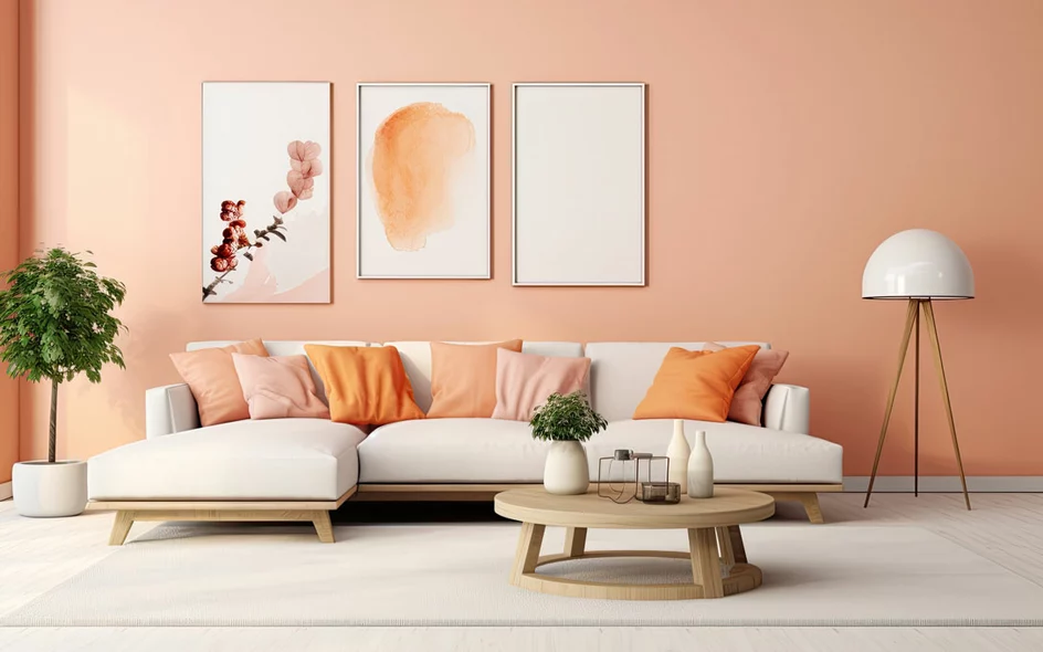 Pantone-Farbe 2024 „Peach Fuzz“ kombiniert mit Design- oder Holzböden